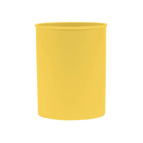 Il Portapenne in polipropilene rotondo, colore giallo pastello, ha un diametro di 7,5 cm e un”altezza di 9,5 cm. E” 100% riciclabile e progettato per uso scolastico, certificato secondo la norma EN 71.
