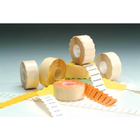 Acquista i rotoli di etichette onda per la tua prezzatrice Motex 2616. Questo prodotto include 16 rotoli con 100 etichette ciascuno, adesivo permanente, dimensioni 26×16 mm, perfetto per la stampa su due linee.
