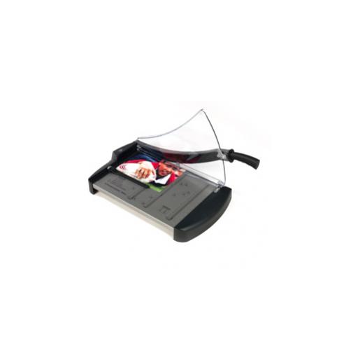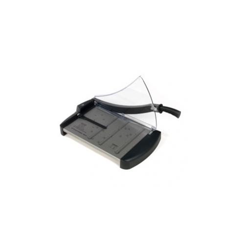 Taglierina a leva robusta leggera e compatta con pressino manuale sulla base in abs sono prestampati i formati uni e la scala in centimetri taglia fino a 7 fogli da gr 80 conuna luce di taglio di cm 30 6