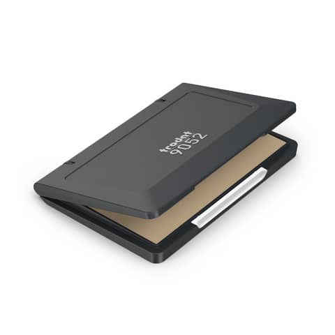 Il cuscinetto in feltro per timbro Trodat 9052M è disponibile con coperchio in metallo, misura 11×7 cm e colore verde. Ha un ampio serbatoio di per migliaia di impronte nitide, conforme alla norma DIN ISO 14145-2.
