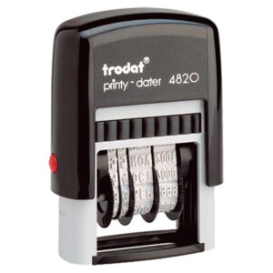 Il Datario in gomma TRODAT CLASSIC 1020 ha un”altezza dei caratteri di 5 mm, una struttura in metallo e un”impugnatura in plastica, ideale per uso quotidiano nella categoria dei Datari.
