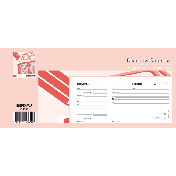 Blocco di ricevute generiche con 50 fogli bianchi da 10×16,8 cm 8008842942528