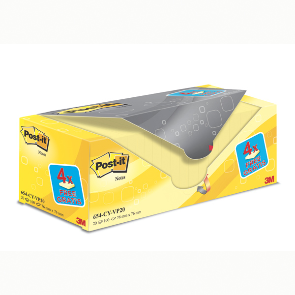 Il blocco adesivo Post-it 654 misura 76×76 millimetri, ha una grammatura di 70 grammi e contiene 100 foglietti giallo canary, perfetti per prendere note o inviare messaggi. Sono facili da usare e possono essere rimossi senza lasciare residui.