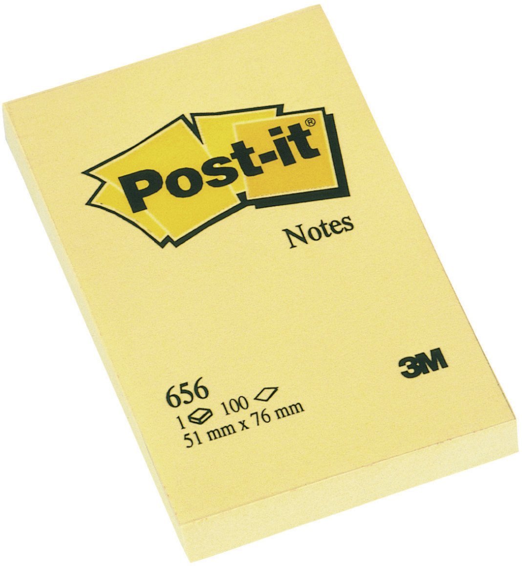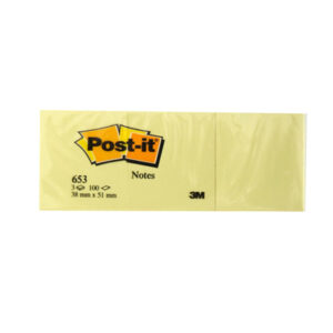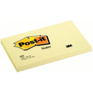 Il blocco adesivo Post-it 654 misura 76×76 millimetri, ha una grammatura di 70 grammi e contiene 100 foglietti giallo canary, perfetti per prendere note o inviare messaggi. Sono facili da usare e possono essere rimossi senza lasciare residui.