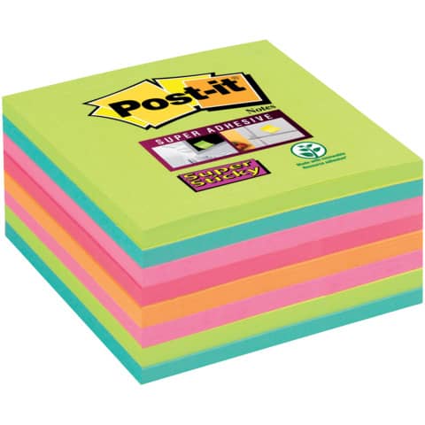 Scopri i Foglietti Post-it Super Sticky Notes, ideali per superfici verticali e di difficile adesione. Sono super resistenti, versatili e offrono visibilità super. Disponibili in confezione da 12 blocchetti da 90 fogli ciascuno, in colori assortiti, formato 76×76 mm.
