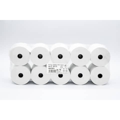 Acquista Rotoli registratori cassa in carta termica BPA Free, grammatura 48 g/m², formato 57 mm e diametro nucleo 12 mm, conformi al regolamento UE 2016/2235, in confezione da 10 pezzi.