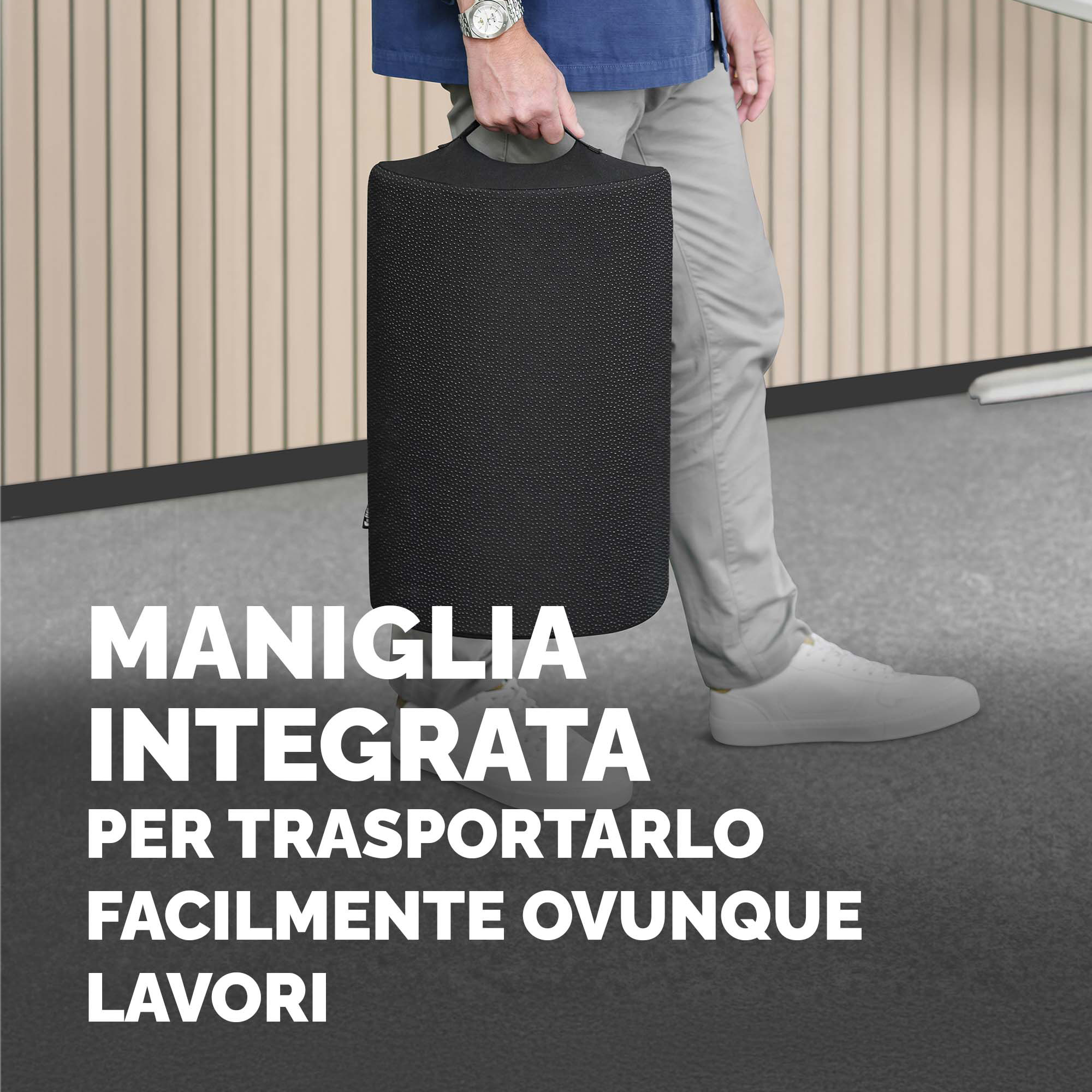 Il poggiapiedi SoleMate è un prodotto di ergonomia per l”ambiente di lavoro, migliorando la postura e la circolazione con le gambe sollevate, riducendo la pressione nella parte inferiore della schiena e il disagio derivante dalla posizione seduta.