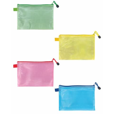 La busta plastibor con ZIP in EVA colori pastello è disponibile in formato A4, con misure di 31,5 x 24,5 cm e colori assortiti come lilla, rosa, azzurro, giallo e grigio.