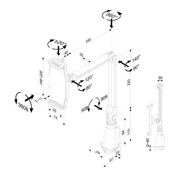 Il Supporto Tablet da Tavolo offre flessibilità di utilizzo, ruotando di 90° e inclinabile fino a 75° per garantire una comoda posizione di visualizzazione con un design intelligente.