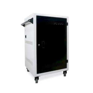 Il Carrello ricarica dispositivi OMNICHART GO36 è un carrello per 36 Notebook, Chromebook e Tablet con struttura metallica e scompartimento frontale con serratura di sicurezza.
