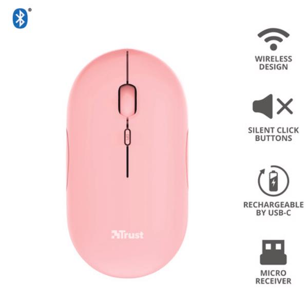 Acquista il Mouse Dual Silent Rechar White/Pink, un dispositivo wireless con connettività Dual-Wireless e batteria ricaricabile, ideale per uso quotidiano con una risoluzione regolabile tra 800, 1200 e 1600 DPI.
