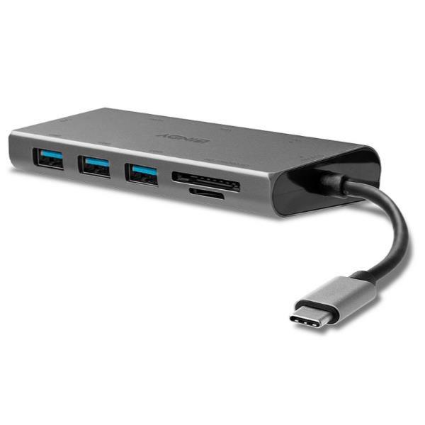 La Mini Docking Station è un pratica soluzione di connessione per dispositivi, dotata di una porta HDMI, tre porte USB 3.0 e una porta USB-C con Power Delivery fino a 87W.