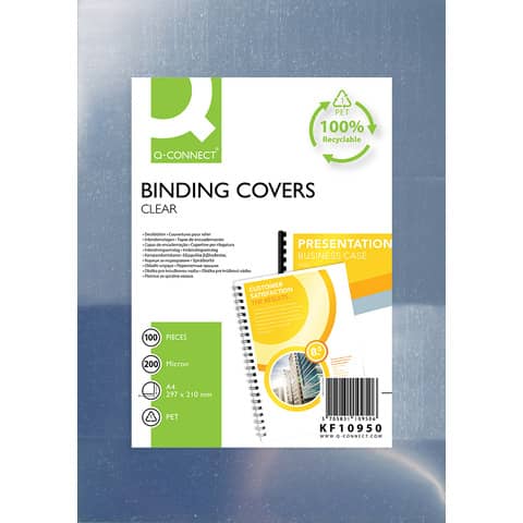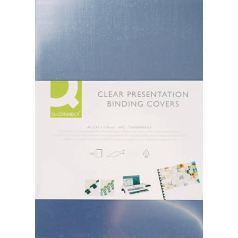 Acquista la copertina trasparente CF100 CLEAR per rilegature in formato A4 e spessore 150my. Ideale per documenti e presentazioni che devono essere aperte a 360° grazie al dorso plastico o metallico. Ottima qualità e resistenza.