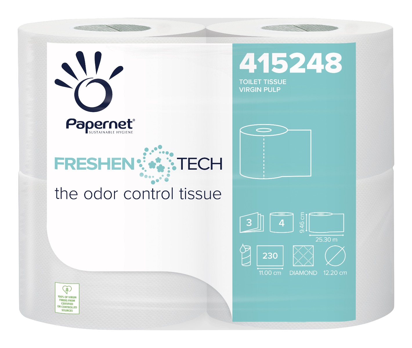 La carta igienica interfogliata di Papernet è realizzata in pura cellulosa a 2 veli, con goffratura a onda e dimensioni dello strappo di 11×21 cm. Il pacco da 224 strappi è ideale per il bagno, offrendo igiene e comfort con una grammatura di 18 g/m2 e un grado di bianco dell”85%.