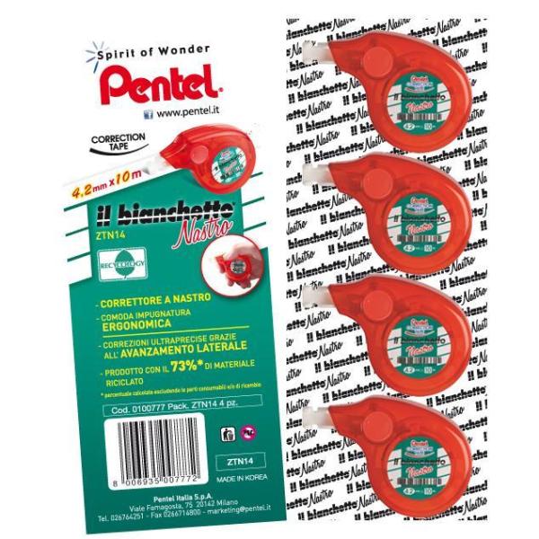 Il corretto a nastro è un correttore monouso realizzato con un supporto in film plastico, altamente coprente, subito riscrivibile e riavvolgibile. Ideale anche per mancini, in confezione blister.