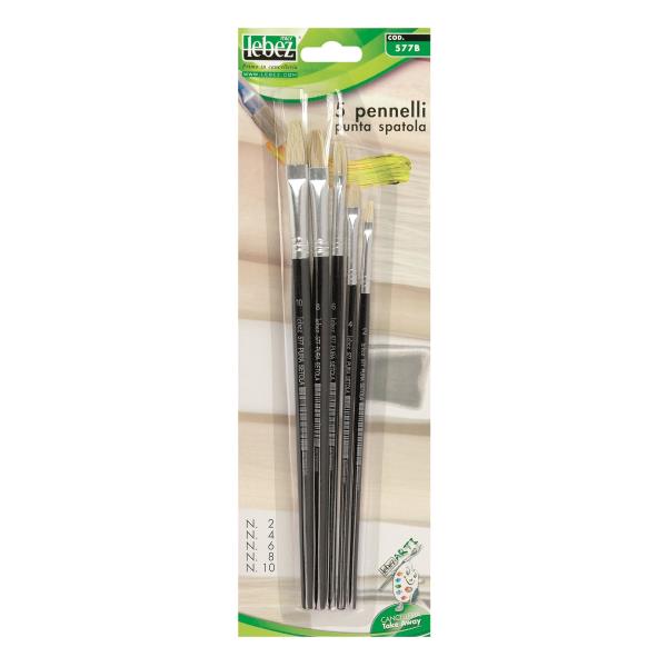 Il BLISTER 5 PENNELLI A SPATOLA appartiene alla categoria Multifunzione, contiene pennelli in pura setola con manico in legno, dalla dimensione 2 alla 10, ideali per vari utilizzi.