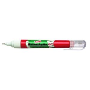 Il Correttore Pentel è un bianchetto micro a punta fine multiuso con asciugatura rapida. Ha un cappuccio trasparente che si fissa con un click, impedendo l”asciugatura del liquido. Contiene 7 ml di liquido e permette di scrivere subito dopo la correzione.