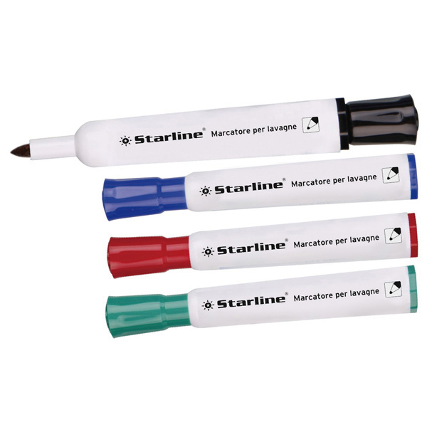 Il marcatore per lavagne cancellabili Starline è un prodotto di alta qualità con inchiostro cancellabile a secco, fusto bianco e cappuccio nel colore dell”inchiostro, punta tonda da 2mm e colore nero.