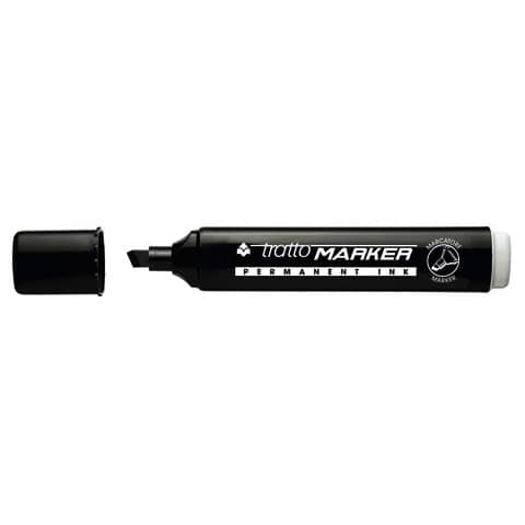 Il marcatore permanente TRATTO Marker è adatto per vetro, metallo, plastica, legno e cartone. Ha un”inchiostro a base d”alcool, punta a scalpello e tratto di 1-5 mm. Il colore del fusto e dell”inchiostro è nero, ideale per uso casalingo o in ufficio.