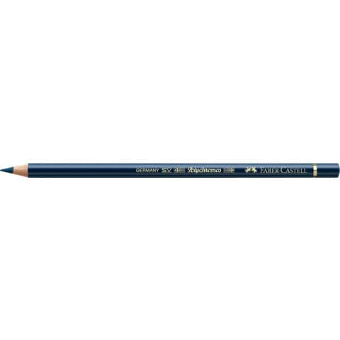 Le Matite colorate artistiche permanenti Polychromos di Faber Castell hanno pigmenti pregiati e stabilità alla luce, tratto morbido e intenso, mina da 3.8 mm resistente all”acqua, fusto in legno di cedro e vernice ecologica, colore blu ftalico.