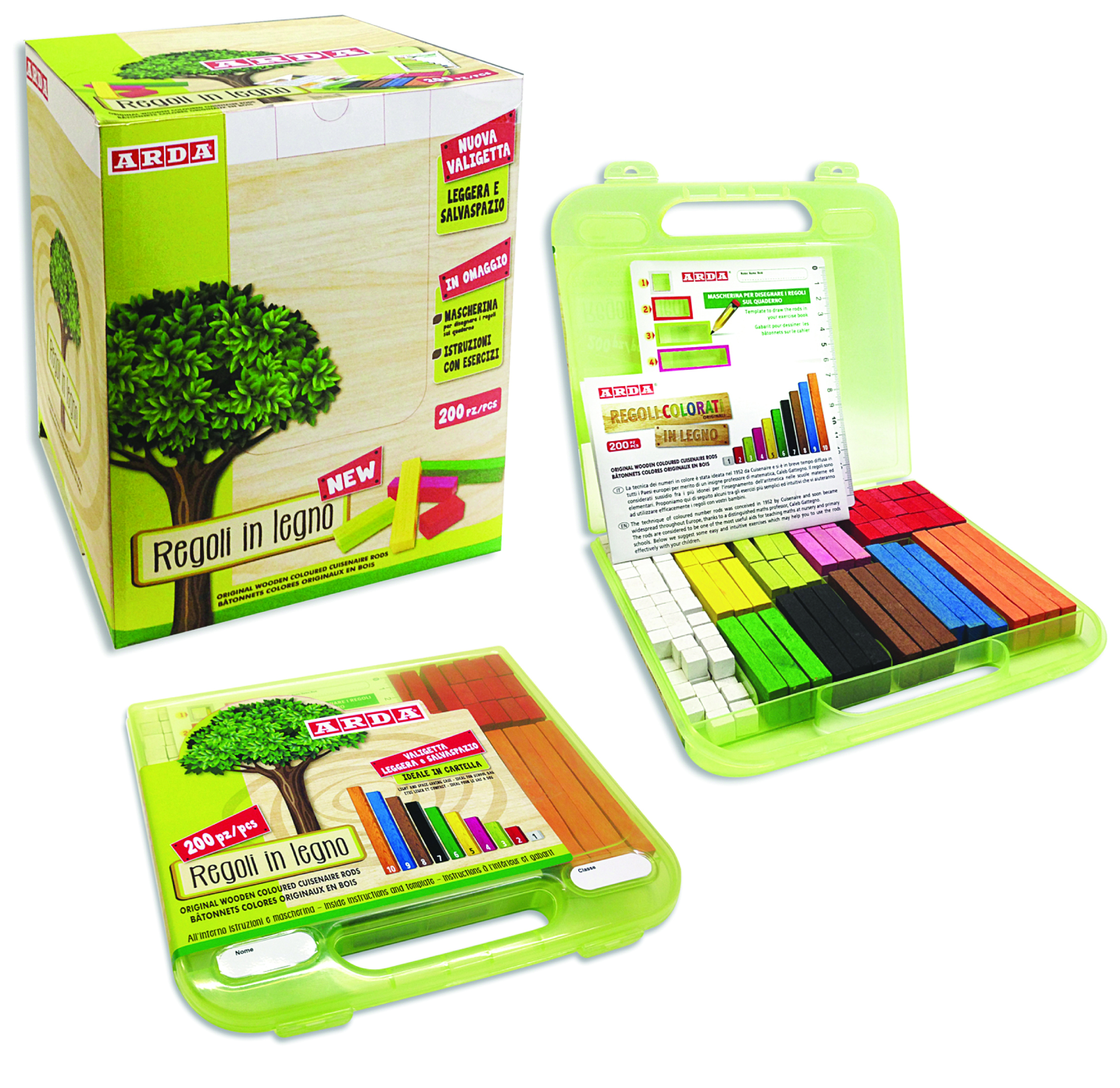 Valigetta regoli numeri colorati da 200 pezzi per bambini. 8004957102222