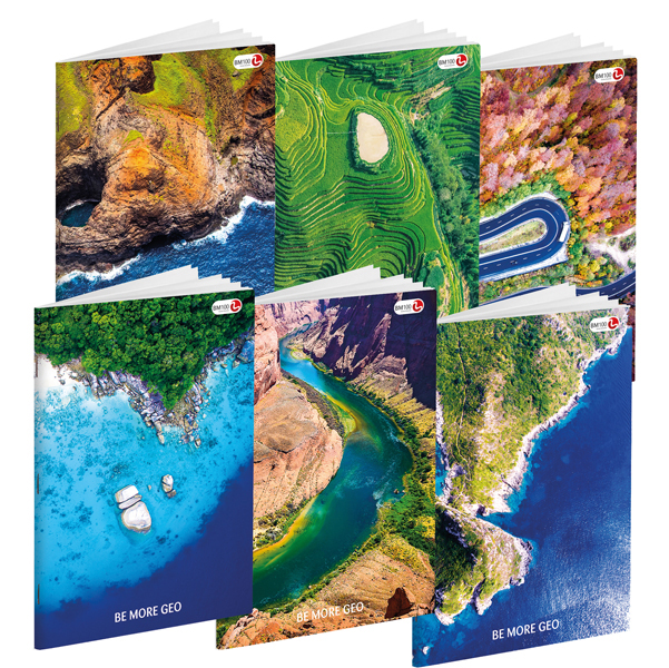Quaderni Maxi Colorface in formato A4 con 18+1 fogli da 100 g/m2 e copertine in cartoncino da 240 grammi. Prodotto con energia solare, certificato Federottica e rigatura di 5 mm.