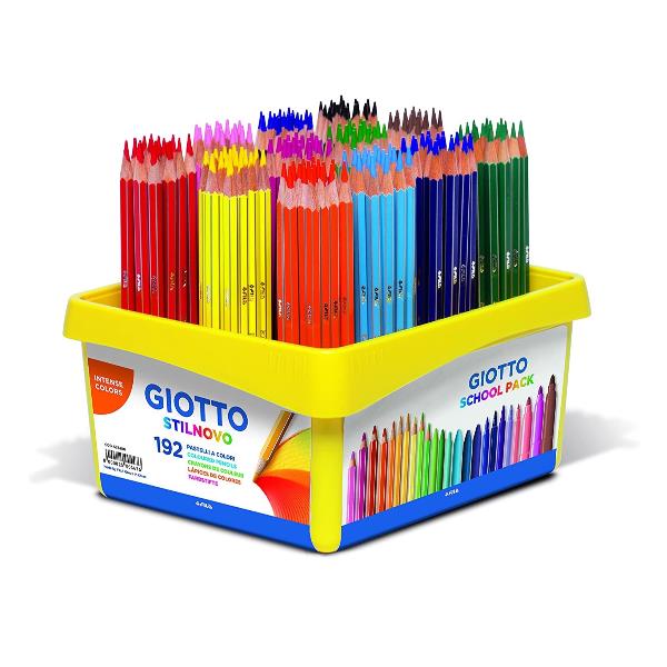 Matite colorate GIOTTO Stilnovo in astuccio da 10, con mina cancellabile e maxi gomma. Ideali per la scuola, ottimi per colorare, scrivere e sottolineare. Facili da temperare, con diametro mina di 3,3 mm e colore assortiti.