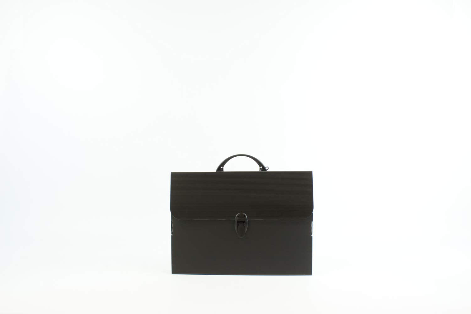La valigetta Polionda 254/P ha un dorso di 8cm e misura 27x37cm, ma non è specificato il numero di tasche.