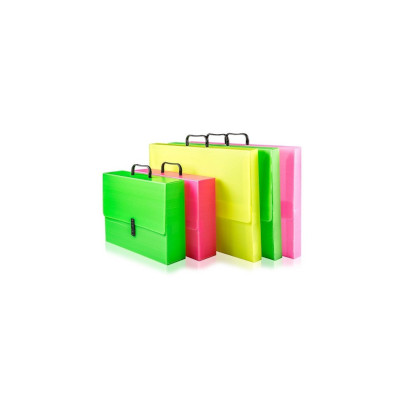 Valigetta HARDOX FLUO in polipropilene alveolare fluorescente con dorsi rigidi, misure 28x43x8,5 cm, ideale per tubi portadisegni e bande appendidisegni, disponibile in colori assortiti.
