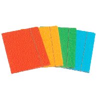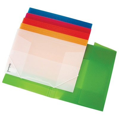 Le cartellette a tre lembi con dorso di 1 cm e elastico sono disponibili in una confezione da 6 pezzi con colori assortiti, tra cui blu, azzurro, verde, giallo, arancio e rosso. Sono realizzate con copertina cartonata lucida e pesante di 700 grammi e hanno un formato di 25,5 x 35 cm.