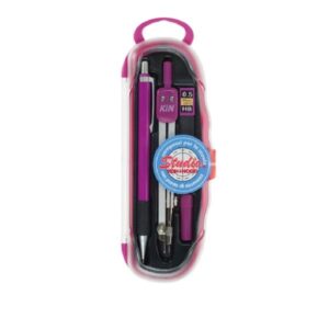 Il COMPASSO STUDIO è un kit da 7 pezzi adatto per uso scolastico, dotato di aghi di sicurezza. Include un compasso con punta di sicurezza, balaustrino regolabile e accessori.