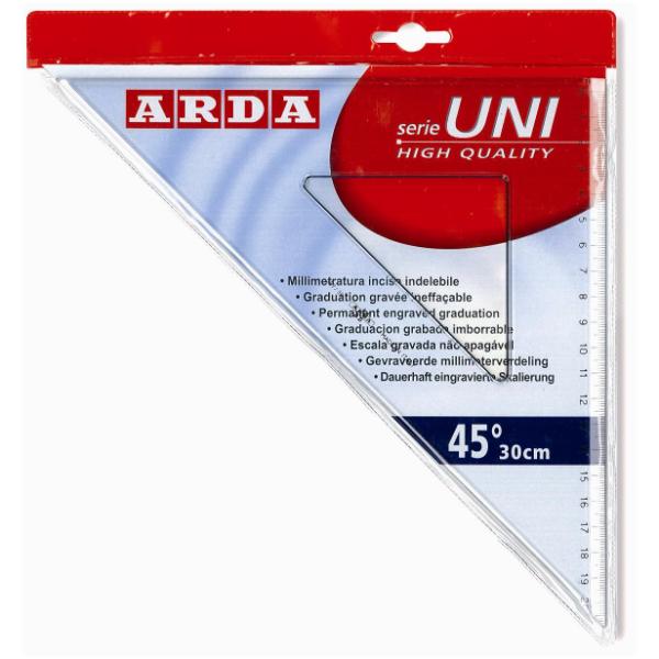 Squadra a 45 gradi da 30 centimetri di linea uni con bordo interno. 8003438287304