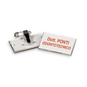 Portanomi in acrilico con clip e spilla da 6,5×3 cm di lebez. 8007509310809