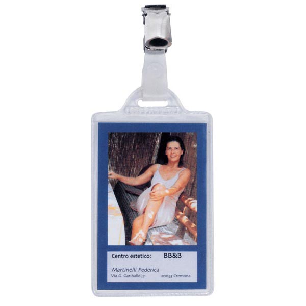 Portanome in pvc trasparente con clip nera – 9×6 cm favorit 8006779363676