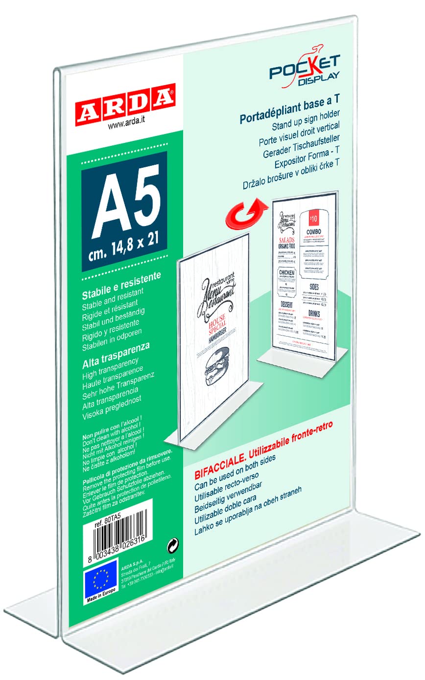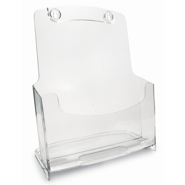 I portadepliant Arda sono ideali per esposizioni moderne, realizzati in plastico trasparente per una visione perfetta del contenuto, con design funzionale e stabilità garantita.