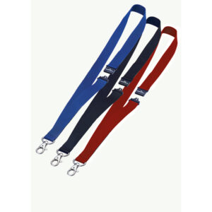 Il Cordoncino in tessuto da 44 cm, colore blu, è un accessorio pratico per portanomi e portabadge, realizzato in tessuto con chiusura di sicurezza antisoffocamento e morsetto in metallo, personalizzabile con logo o slogan aziendale.