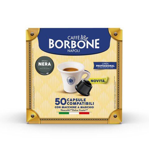 Scopri le Capsule Caffe” Borbone compatibili con Nescafe” Dolce Gusto, una miscela nera forte e persistente, ideale per chi ama i sapori intensi e una carica immediata, con un”intensità di 10/10 e una crema spessa e ricca, in confezione da 90 capsule.