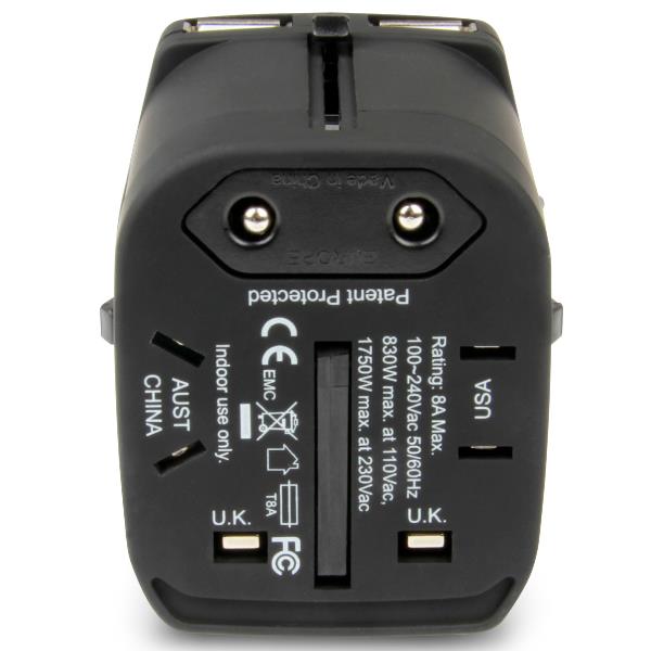 - L`adattatore da viaggio universale non è adatto per un utilizzo con asciugacapelli o stufette con assorbimento superiore ai 6.3A.