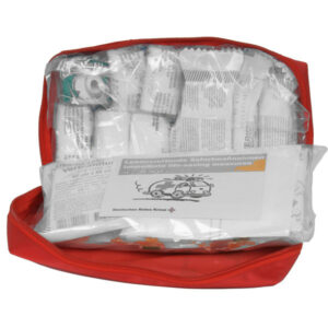 Kit Pronto Soccorso Completo per più di 2 persone, conforme al D.M. 388 del 2003. Contiene guanti sterili, soluzione fisiologica sterile e altri prodotti per il primo soccorso.
