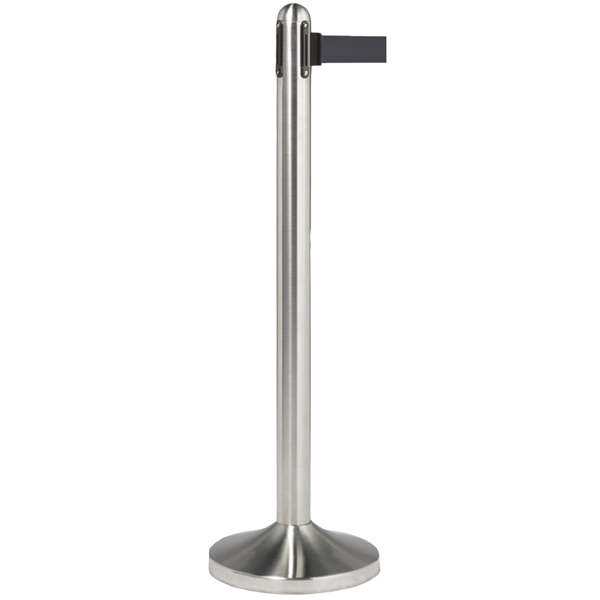 La colonnina segnapercorso in acciaio satinato è di alta qualità e resistente agli agenti atmosferici. Dotata di un nastro retrattile in nylon nero da 2,1 m, ha una base autobilanciata e inclinabile fino a 70°, con finitura superiore stondata e parte superiore svitabile per facilitare l”uso come segnapercorso.