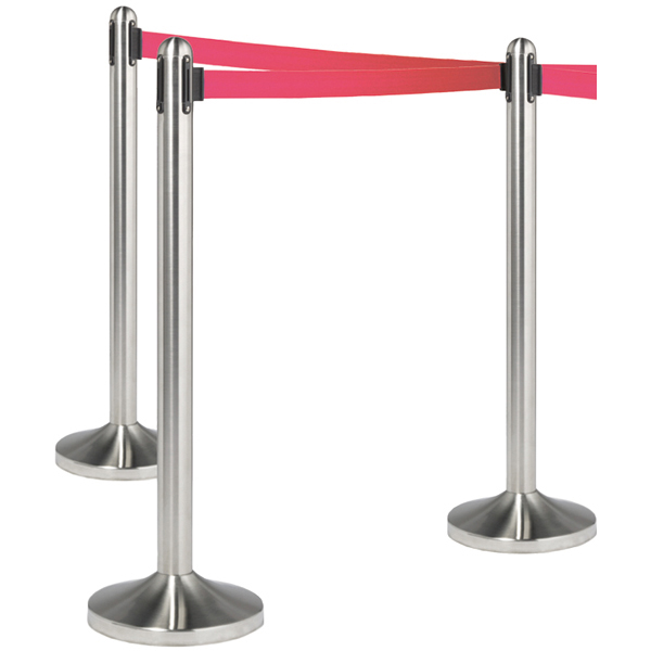 Colonnina segnapercorso in acciaio satinato con nastro retrattile rosso, lunghezza 2,1 m e altezza 100 cm. Ideale per segnapercorsi e eliminacode. Resistente agli agenti atmosferici.