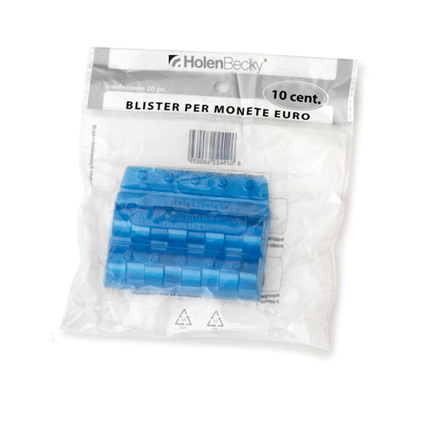 Acquista il CF20BLISTER per monete da 10 cent, un pratico blister in pvc riciclato trasparente. Ideale per rotoli registratori cassa, il prodotto include 20 blister singoli facilmente distinguibili.
