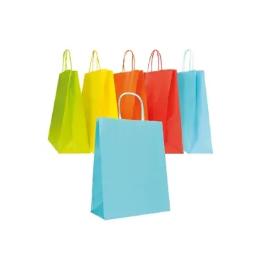 La confezione è assortita in una varietà di colori vivaci: azzurro, verde chiaro, giallo, rosso e arancione, permettendoti di scegliere il colore che meglio si adatta al tuo stile o all`occasione speciale. Le dimensioni dei shopper sono di 18x8x24cm, offrendo uno spazio generoso per contenere i tuoi regali o acquisti.