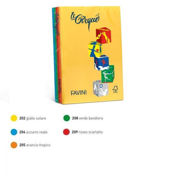 Acquista carta colorata forte Le Cirque gr.80 A4 in confezione da 500 fogli e 5 colori assortiti, ideale per volantini, progetti scolastici e inviti, con grammatura di 80 g/m2 e dimensione A4.