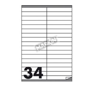 Le etichette CF3400 34FGX100 105X16 9 sono fornite in scatole da 100 fogli formato A4 e sono ideali per applicazioni di etichettatura che richiedono qualità e affidabilità.
