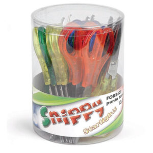 Acquista le nostre forbici con lama in acciaio da 13,5 cm, ideali per uso quotidiano, confezionate in un pratico barattolo da 24 pezzi, dotate di punta tonda e realizzate con materiali di alta qualità.