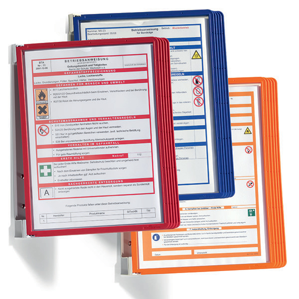Il Leggio da parete robusto VARIO WALL 10 offre un rapido accesso alle informazioni con estrema versatilità di utilizzo. Include pannelli in polipropilene e supporto da muro in acciaio.