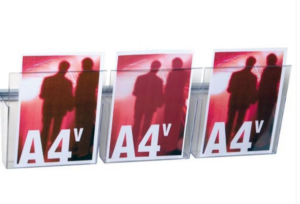 Barra in alluminio con tappini terminali grigi e tappi di fissaggio Completo di 3 tasche portadepliant vision A4 in polistirene trasparente neutro Dimensioni lxhxp 75x14x25cm Marca Studio TColore TrasparenteMateriale AlluminioTipologia Kit vision 3 tascheDimensione 75x14x25cmSupporto SiGaranzia 1 annoPagina catalogo SG 2021 369
