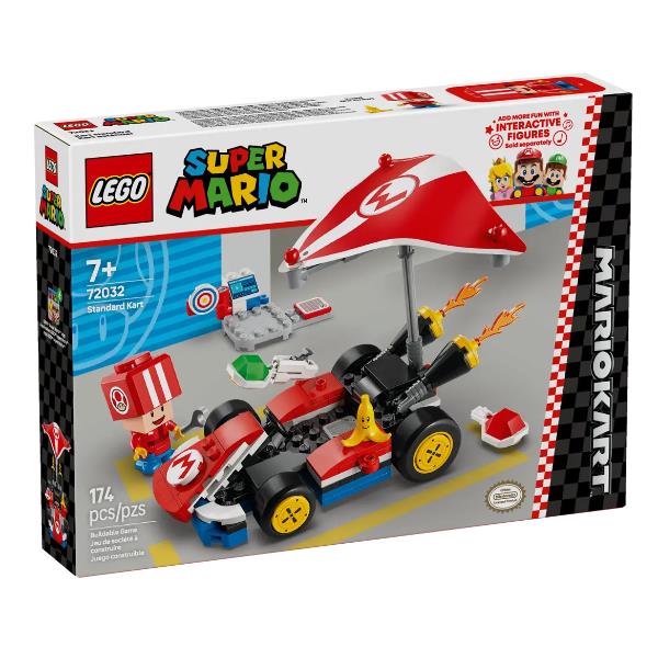 Scopri il mondo delle Costruzioni con MARIO KART: KART STANDARD, un playset emozionante per bambini e appassionati di LEGO Super Mario. Questo set è un`idea regalo perfetta per il compleanno di bambini, bambine e gamer dai 7 anni in su.