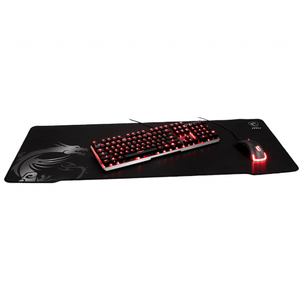 I bordi cuciti rinforzano il contorno del tappetino, aumentando la durata e impedendo ai bordi di arricciarsi. Le dimensioni estese di 900 x 400 x 3 mm offrono ampio spazio per tastiera, mouse e laptop.
